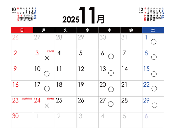 11月のスケジュールだと上記の形で約1ヶ月前にスケジュール発表を公式ラインまたはHPにて公開したします。